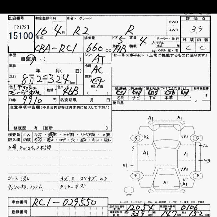 SUBARU R2 R - лот 15100
