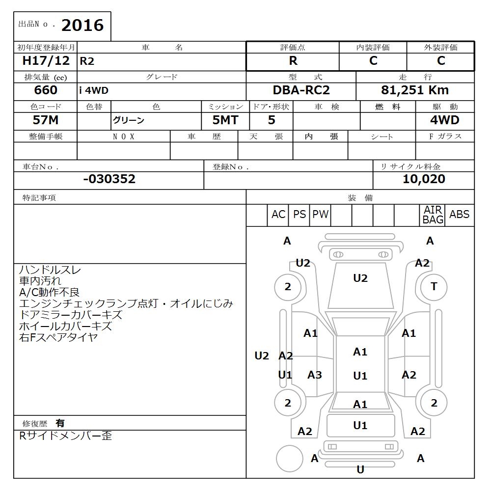 SUBARU R2 i 4WD - лот 2016
