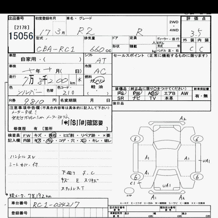 SUBARU R2 R - лот 15056