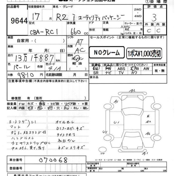 SUBARU R2 YU-TILITI PACKAGE I - лот 9644