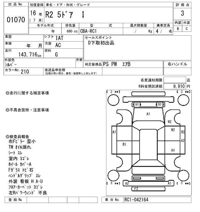 SUBARU R2 I - лот 1070
