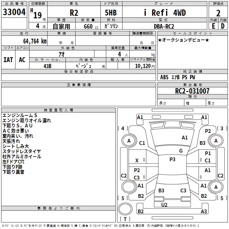 SUBARU R2 - лот 33004
