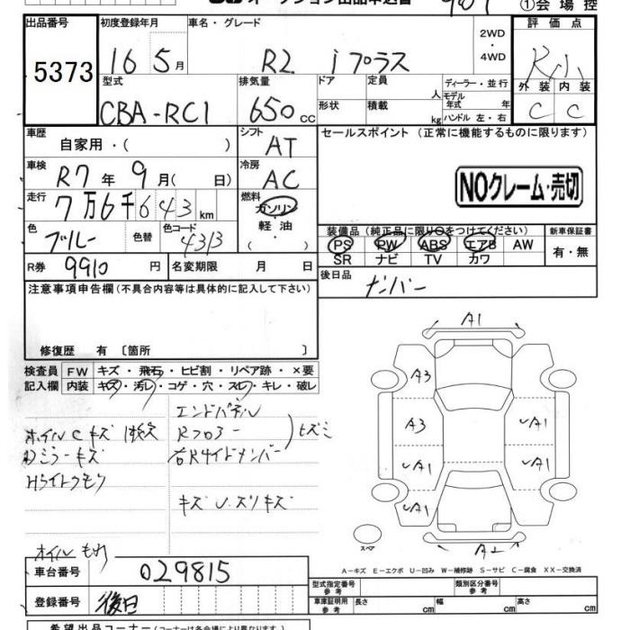 SUBARU R2 I PLUS - лот 5373