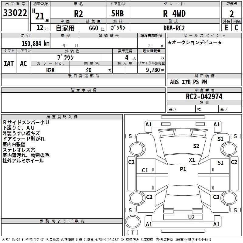 SUBARU R2 R 4WD - лот 33022
