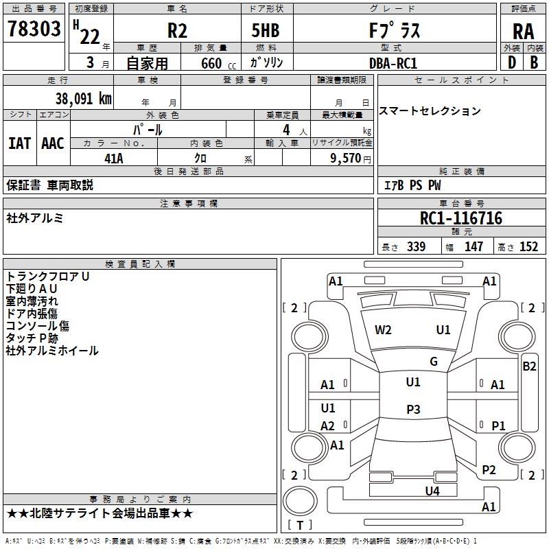 SUBARU R2 F PLUS - лот 78303
