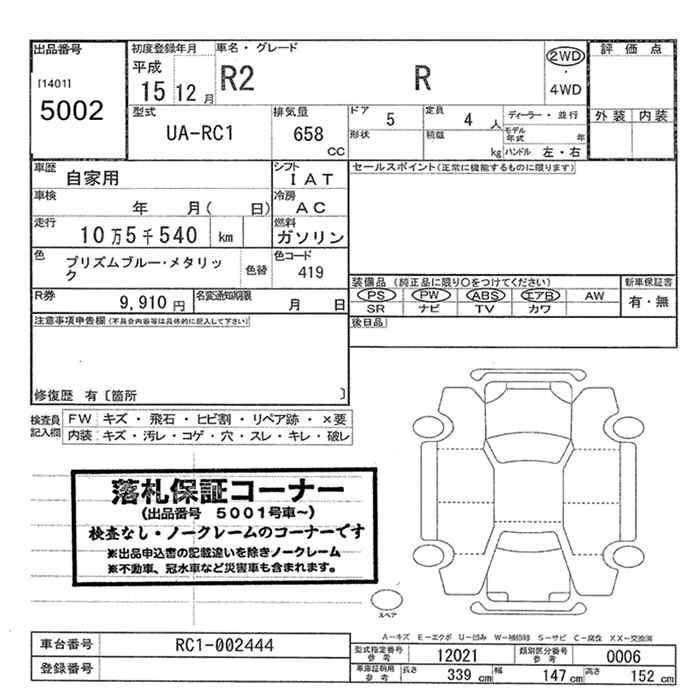 SUBARU R2 R - лот 5002