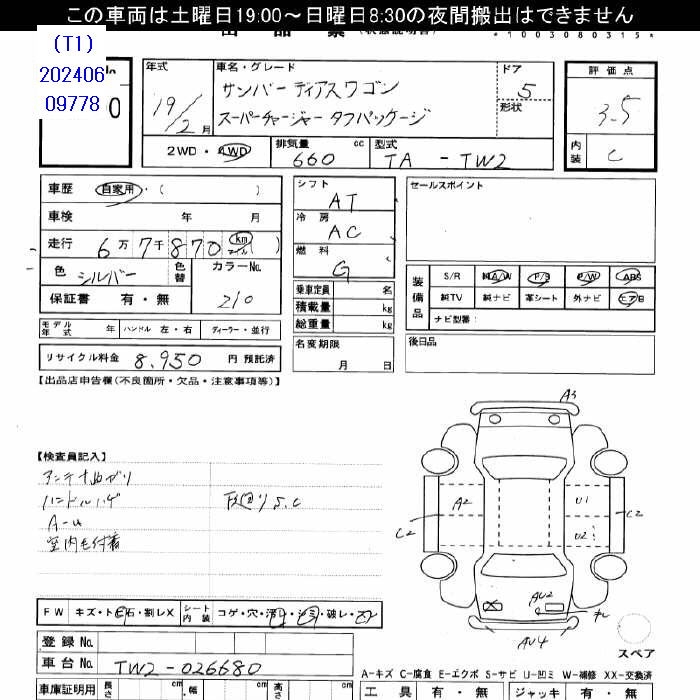 SUBARU SAMBAR DIAS - лот 35996