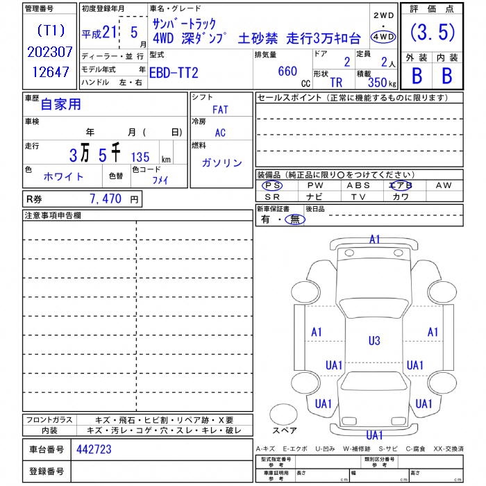 SUBARU SAMBAR TRUCK - лот 739