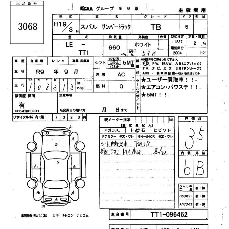 SUBARU SAMBAR TRUCK - лот 3068