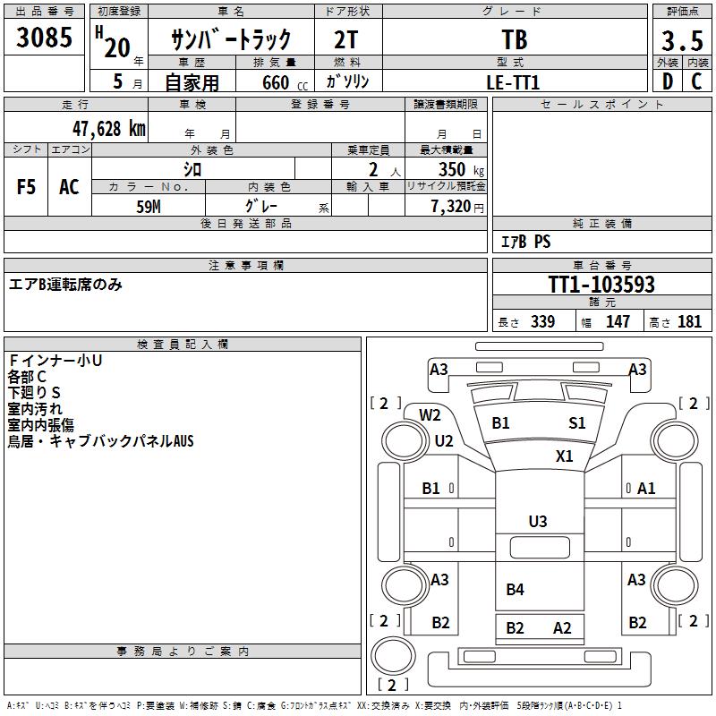 SUBARU SAMBAR TRUCK - лот 3085