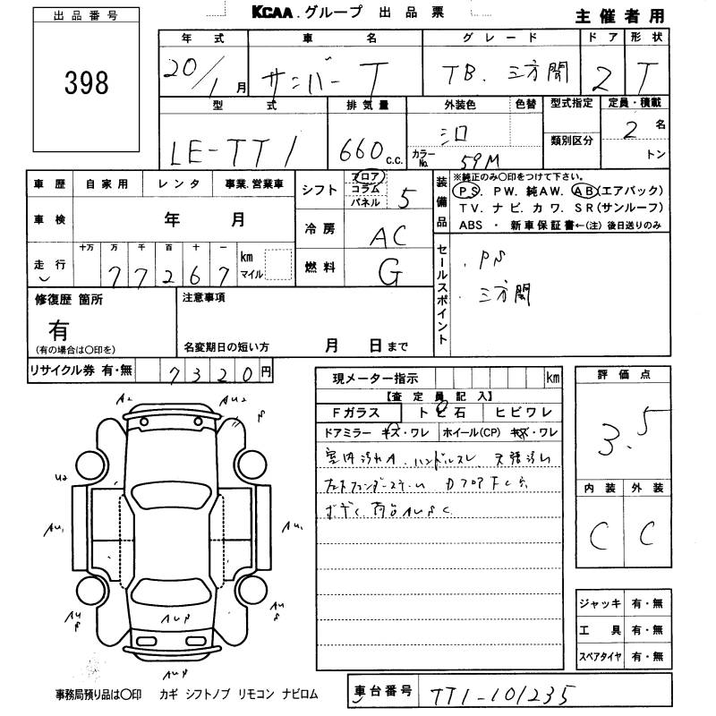 SUBARU SAMBAR TRUCK - лот 398