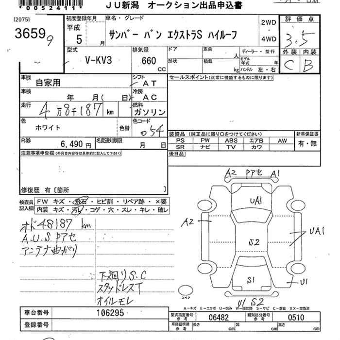 SUBARU SAMBAR VAN - лот 3659