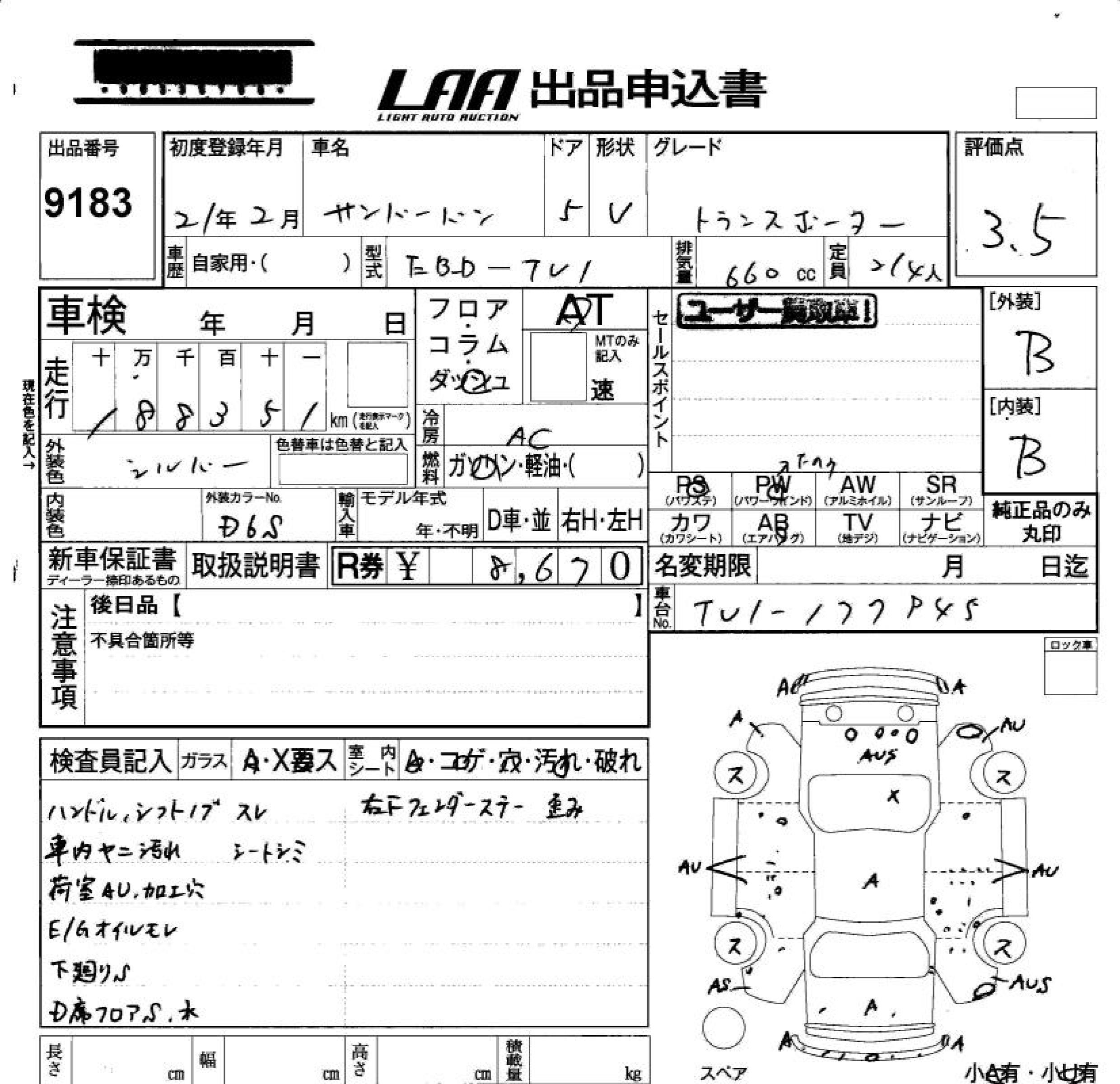 SUBARU SAMBAR VAN - лот 9183