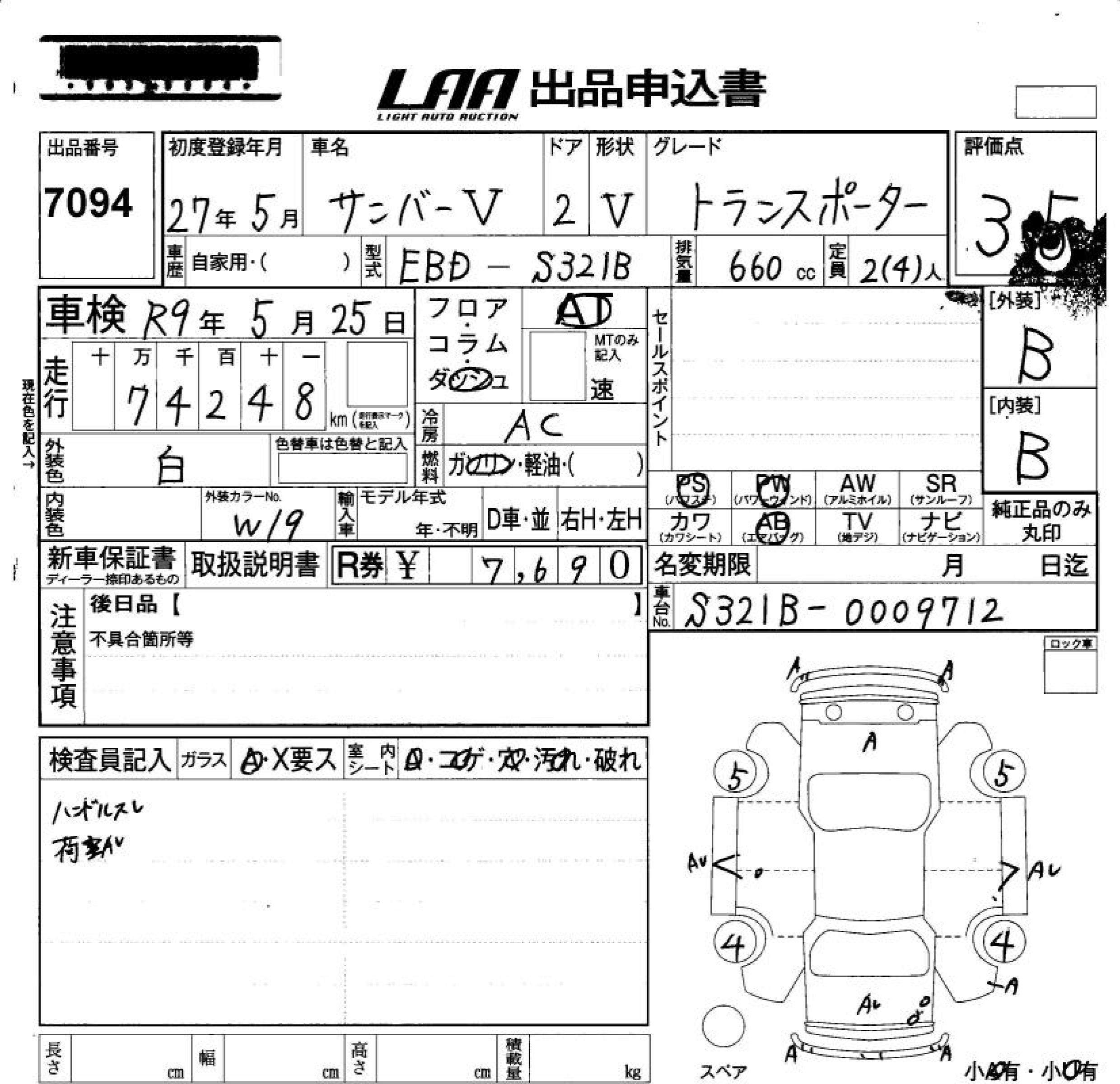 SUBARU SAMBAR VAN - лот 7094