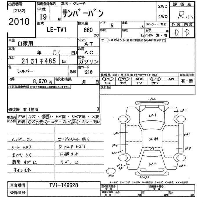 SUBARU SAMBAR VAN - лот 2010