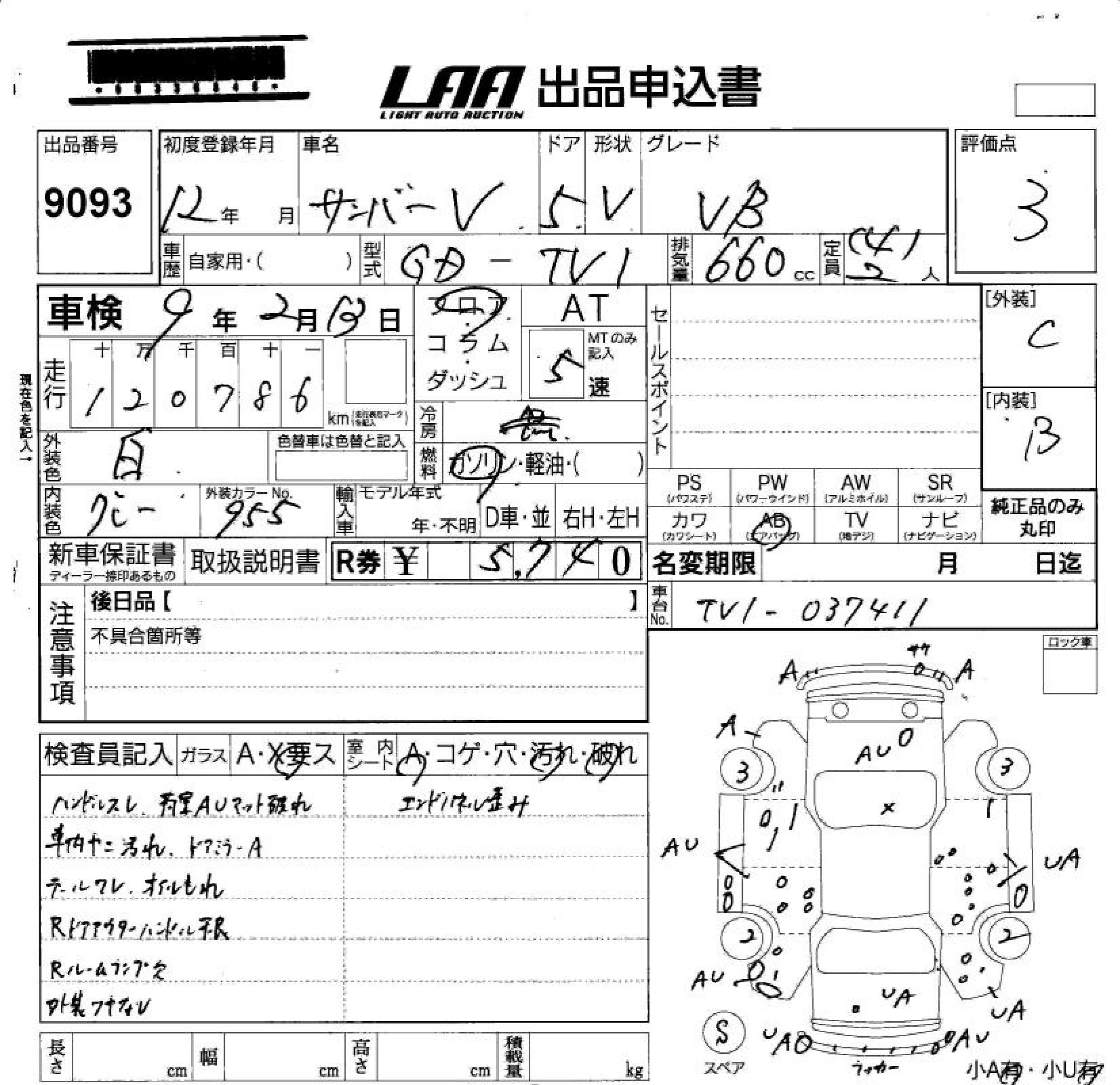 SUBARU SAMBAR VAN - лот 9093