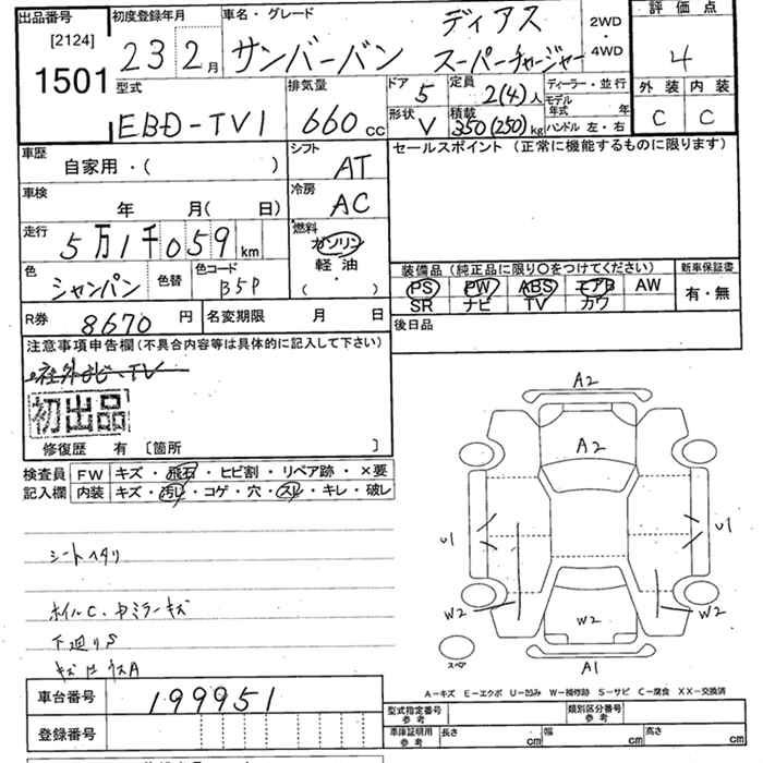 SUBARU SAMBAR DIAS SUPERCHARGER - лот 1501