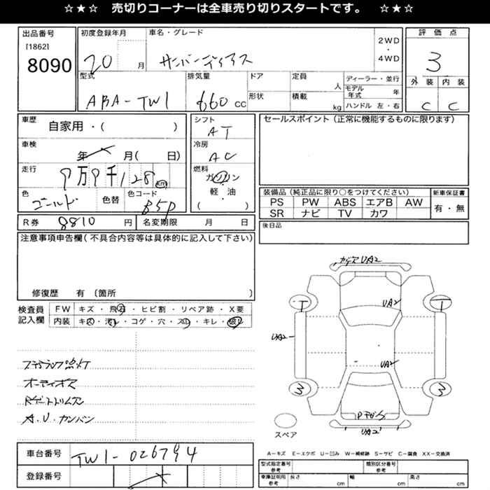 SUBARU SAMBAR DIAS - лот 8090
