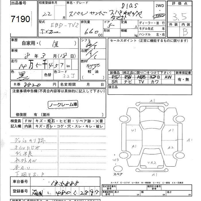 SUBARU SAMBAR DIAS 4WD SUPERCHARGER - лот 7190