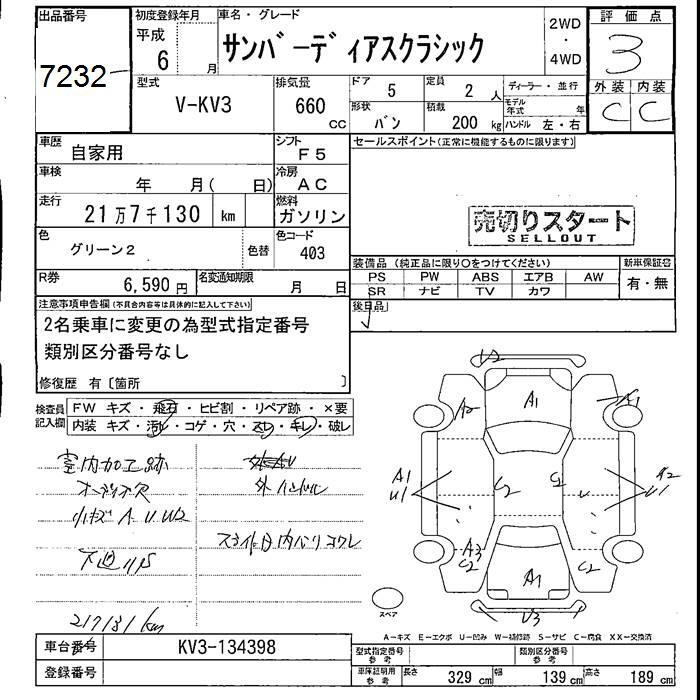 SUBARU SAMBAR DIAS CLASSIC - лот 7232