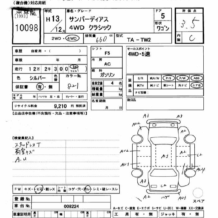 SUBARU SAMBAR DIAS 4WD CLASSIC - лот 10098
