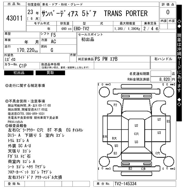 SUBARU SAMBAR DIAS TRANS PORTER - лот 43011