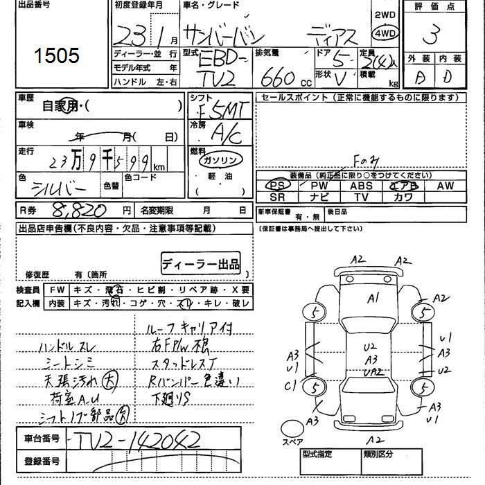 SUBARU SAMBAR DIAS 4WD - лот 1505