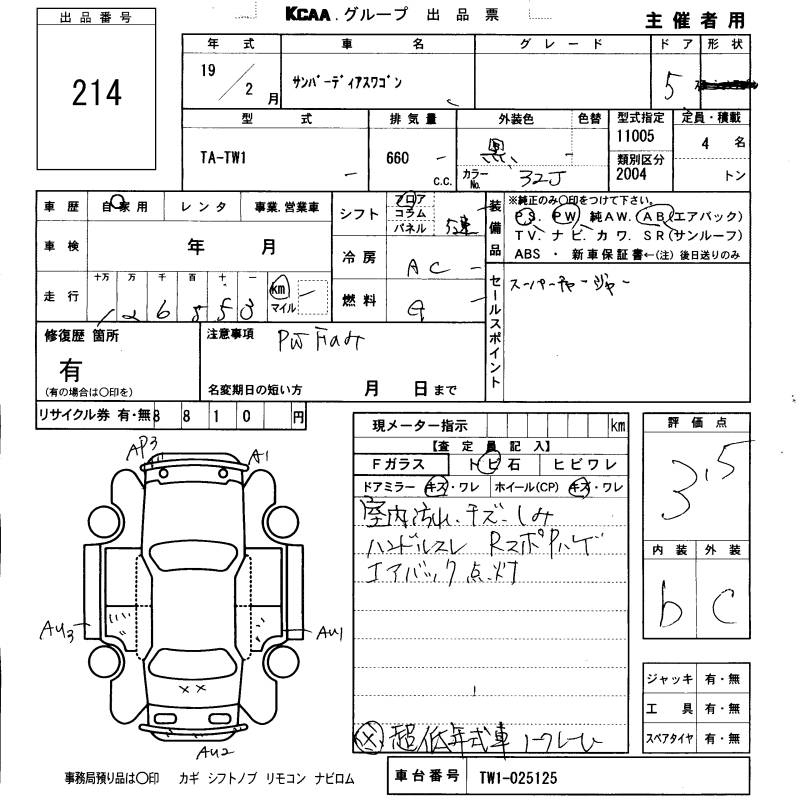 SUBARU SAMBAR DIAS - лот 214