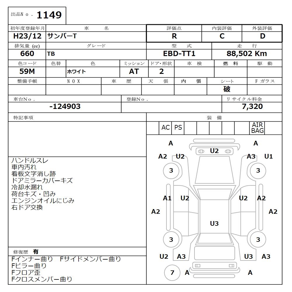 SUBARU SAMBAR TRUCK TB - лот 1149