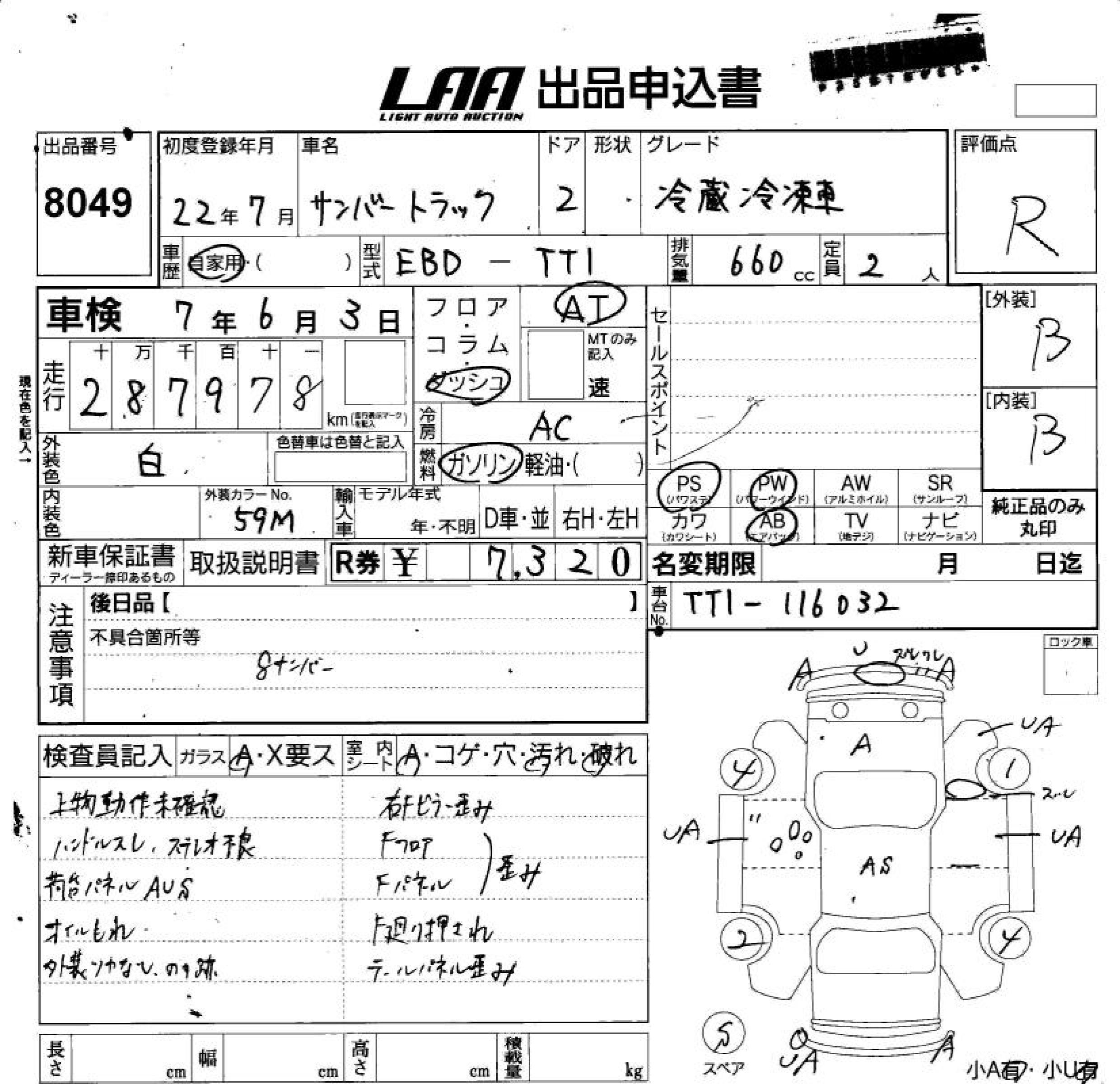 SUBARU SAMBAR TRUCK CHILLING REFRIGERATOR - лот 8049