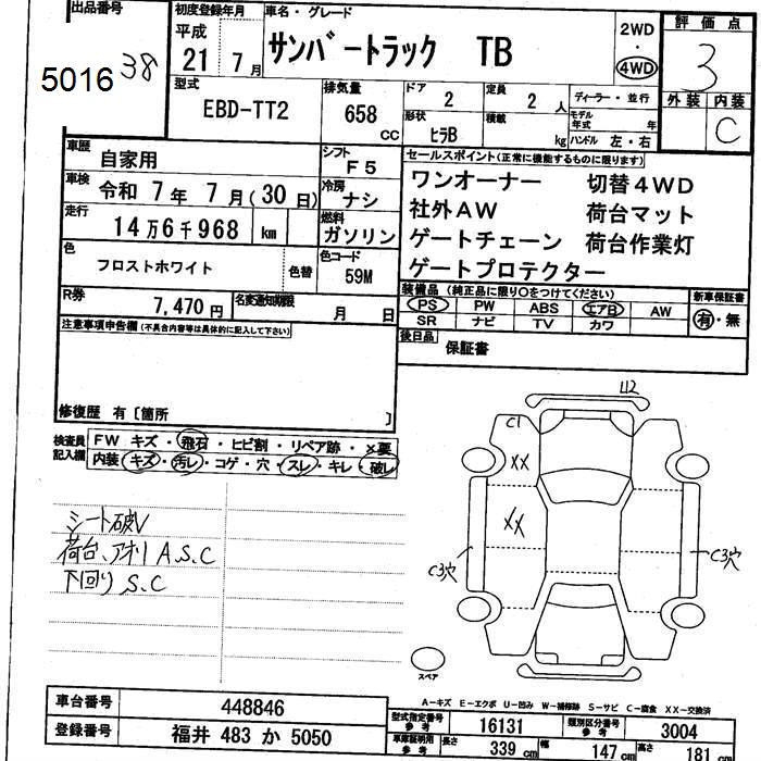 SUBARU SAMBAR TRUCK TB - лот 5016