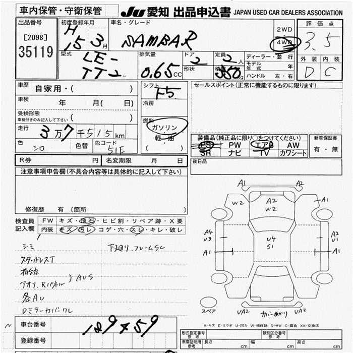 SUBARU SAMBAR TRUCK 4WD - лот 35119