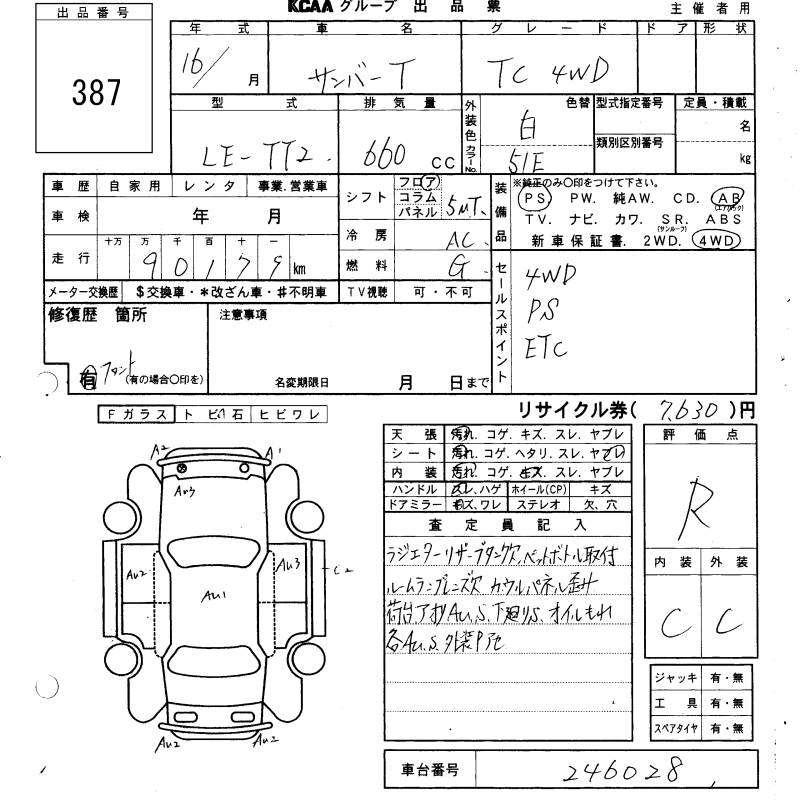 SUBARU SAMBAR TRUCK TC - лот 387