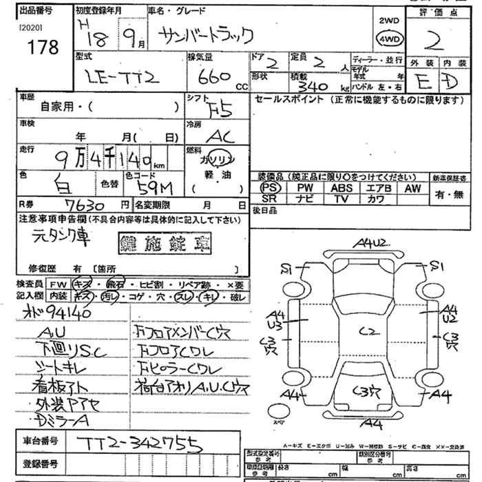 SUBARU SAMBAR TRUCK 4WD - лот 178