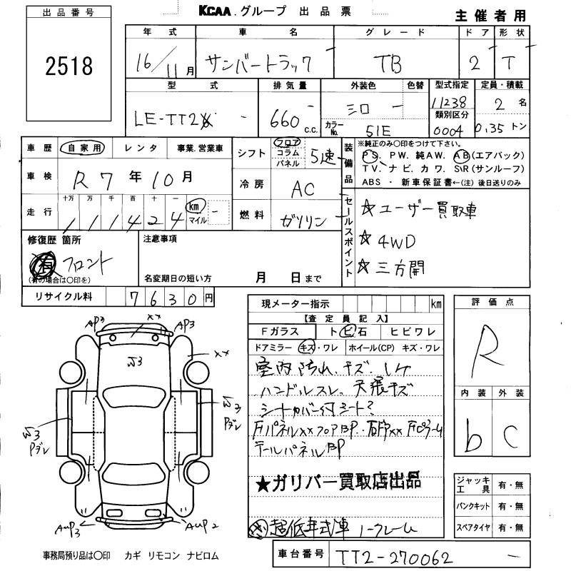 SUBARU SAMBAR TRUCK TB - лот 2518