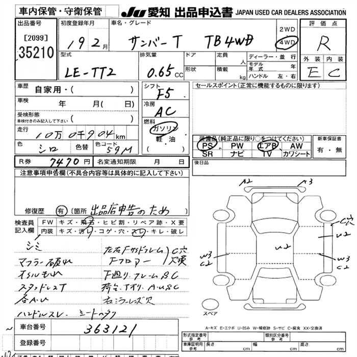 SUBARU SAMBAR TRUCK TB 4WD - лот 35210