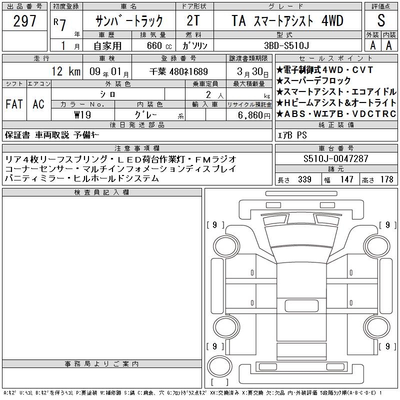 SUBARU SAMBAR TRUCK TA SMART ASSIST 4WD - лот 297
