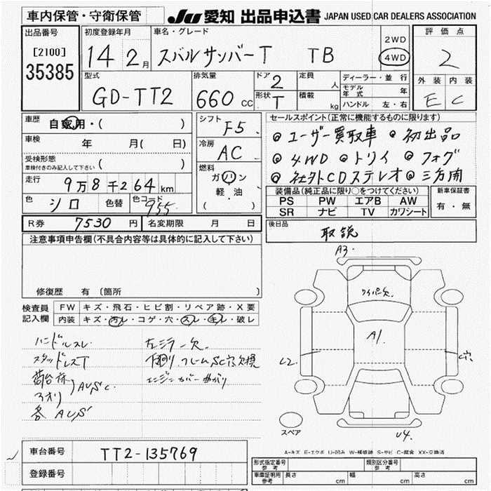 SUBARU SAMBAR TRUCK TB 4WD - лот 35385