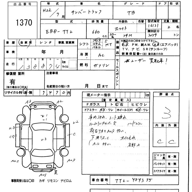 SUBARU SAMBAR TRUCK TB - лот 1370