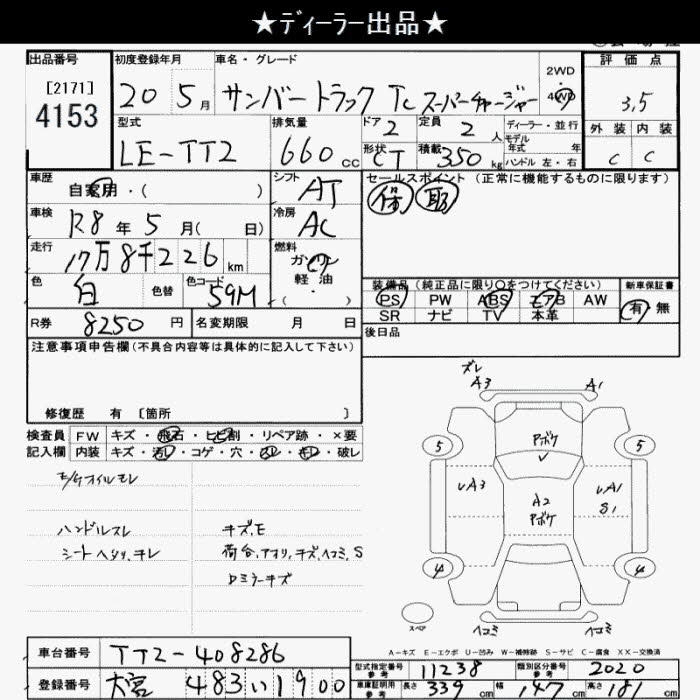 SUBARU SAMBAR TRUCK 4WD TC SUPERCHARGER - лот 4153