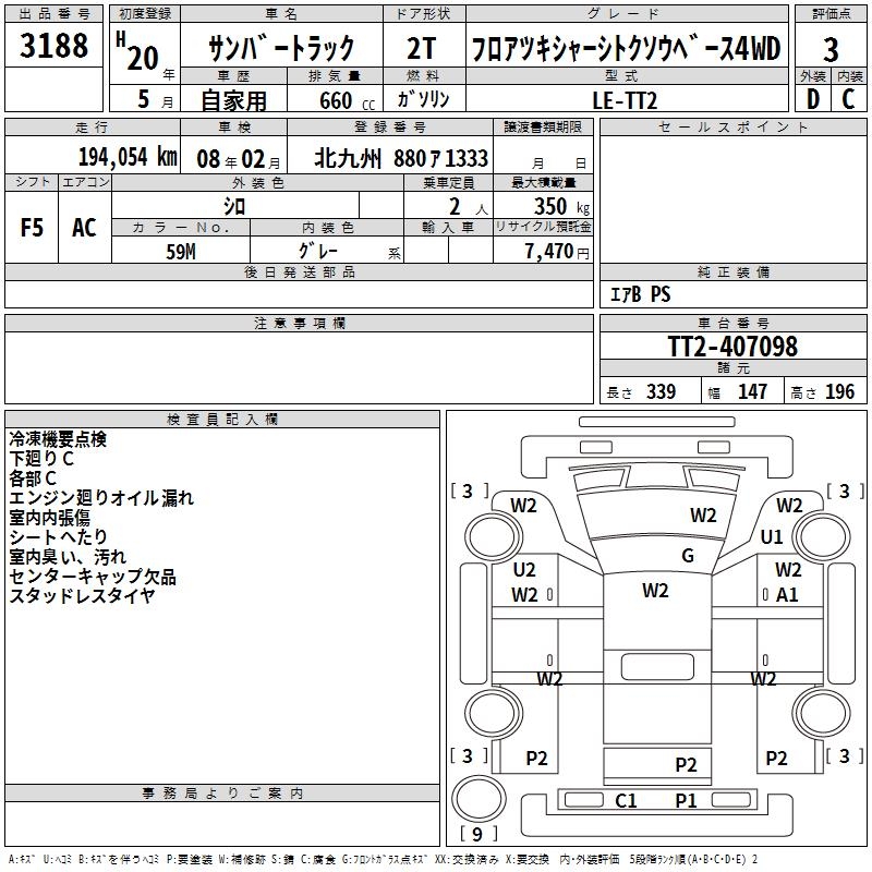 SUBARU SAMBAR TRUCK FLOOR EXIST CHASSIS TOKSOU BASE 4WD - лот 3188