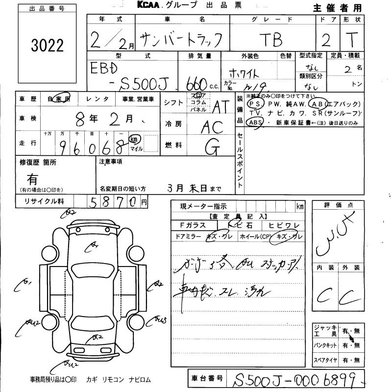 SUBARU SAMBAR TRUCK TB - лот 3022