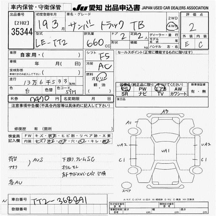 SUBARU SAMBAR TRUCK TB 4WD - лот 35344