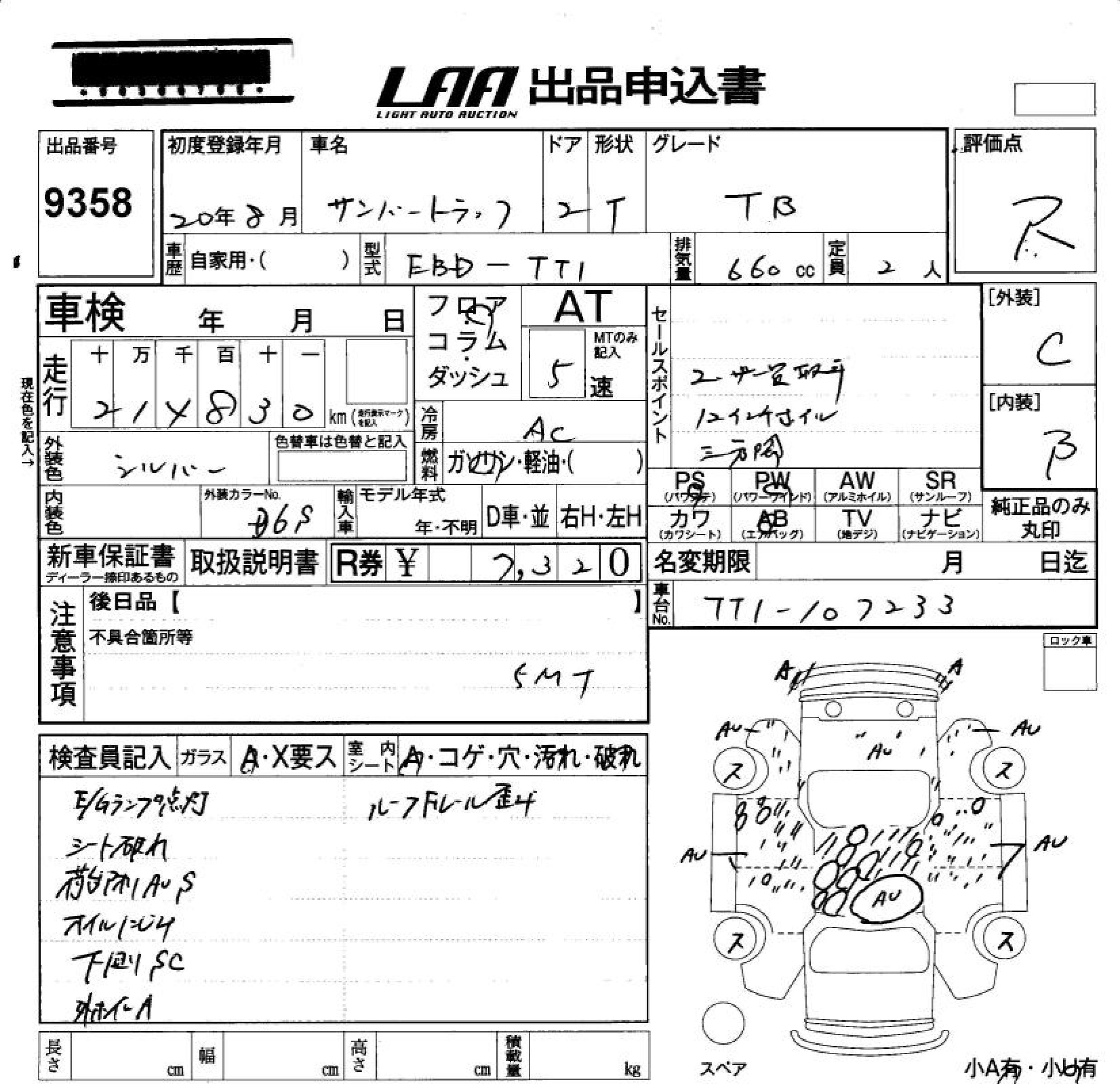 SUBARU SAMBAR TRUCK TB - лот 9358