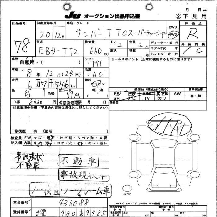 SUBARU SAMBAR TRUCK TC SUPERCHARGER - лот 78