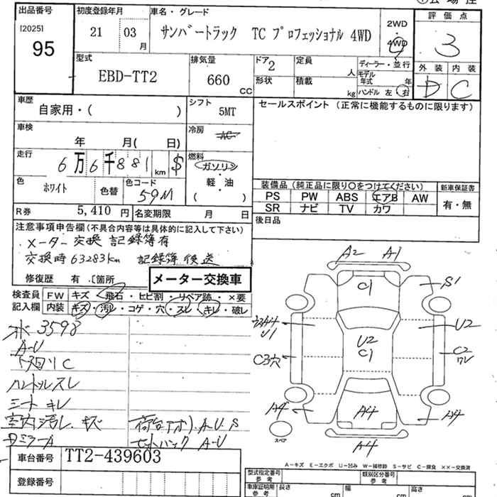 SUBARU SAMBAR TRUCK 4WD TC PROFESSIONAL - лот 95