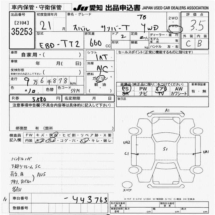 SUBARU SAMBAR TRUCK TB 4WD - лот 35253