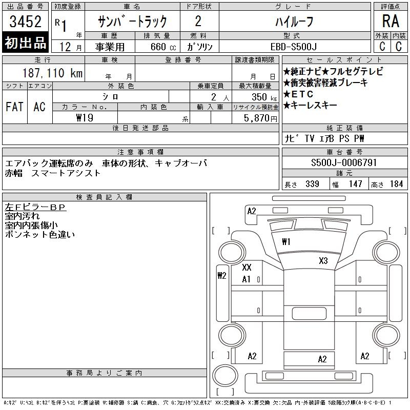 SUBARU SAMBAR TRUCK HIGH ROOF - лот 3452