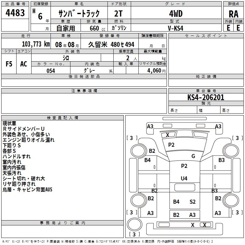 SUBARU SAMBAR TRUCK 4WD - лот 4483