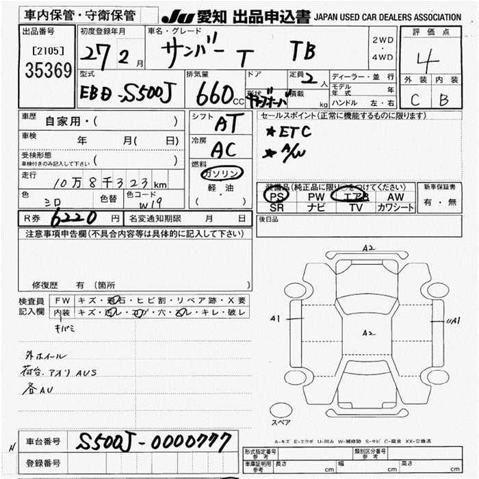 SUBARU SAMBAR TRUCK TB - лот 35369